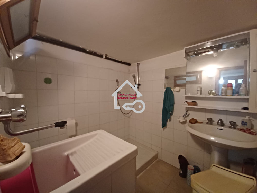 L’area del deposito ospita un’accogliente tavernetta in stile rustico, qui la pratica cucina in muratura ed il caminetto rendono l’ambiente confortevole e caloroso, a seguire vi è un bagno finestrato ed una camera ad oggi adibita a studio.