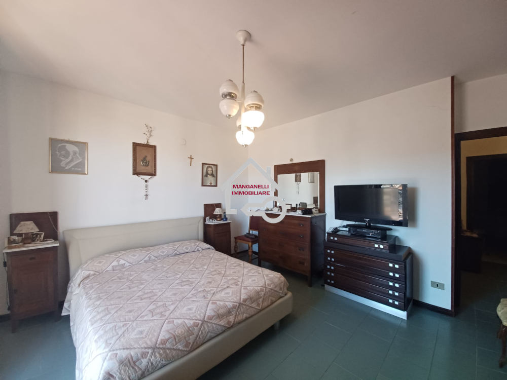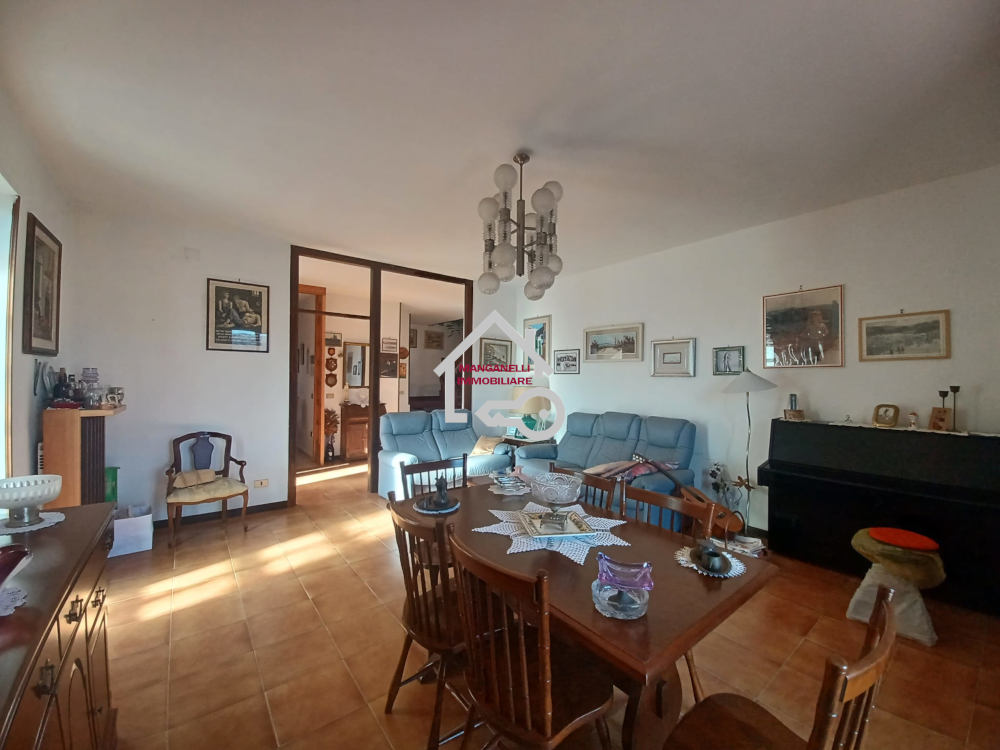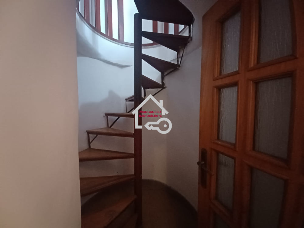 Al piano terra si accede o attraverso un portoncino che dall’area esterna si apre in un disimpegno o anche grazie una scala a chiocciola dal piano seminterrato. Qui lo spazio disponibile è stato distribuito tra una cucina capiente e funzionale arricchita da un caminetto rustico dalla particolare forma circolare, a seguire uno spazioso salone con balcone a tre ante che lascia spaziare lo sguardo sulla cittadina fino ad arrivare al mare.