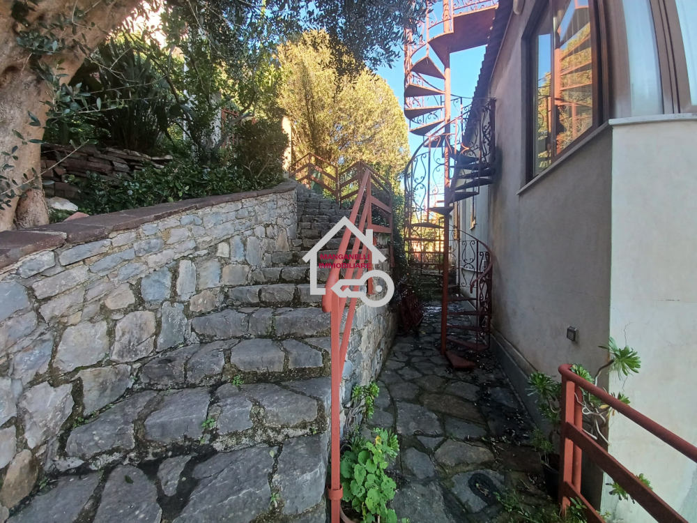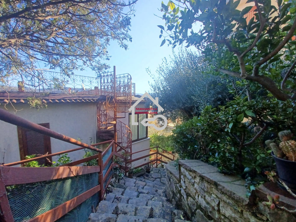 L’accesso alla proprietà avviene attraverso una caratteristica scalinata in pietra che conduce ad un’ampia corte anch’essa completamente lastricata in pietra con affaccio su un giardino di 200 mq piantumato ad alberi da frutto.